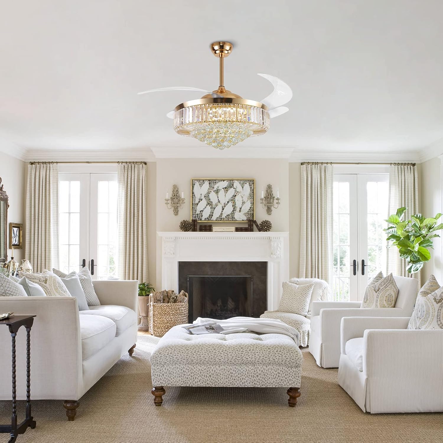 India’s largest chandelier fan packs a 52-inch sweep of crystal-clear retractable blades, an oversized high-torque BLDC motor, and a grand crystal dome. When running, it moves serious air for big spaces; when off, the blades tuck away to leave a statement chandelier centre-stage.