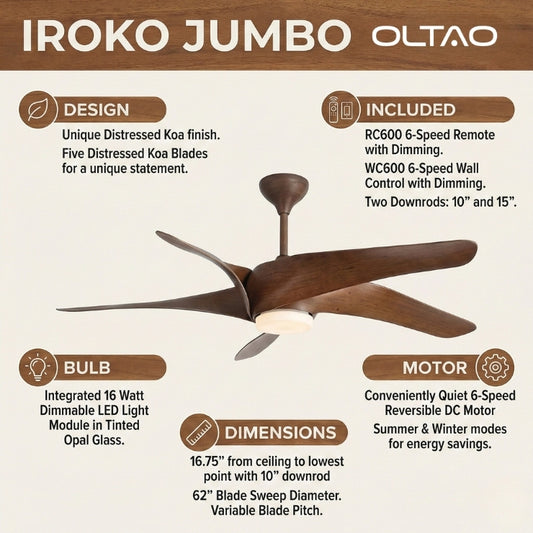 Iroko Jumbo 62" Ceiling Fan with Light